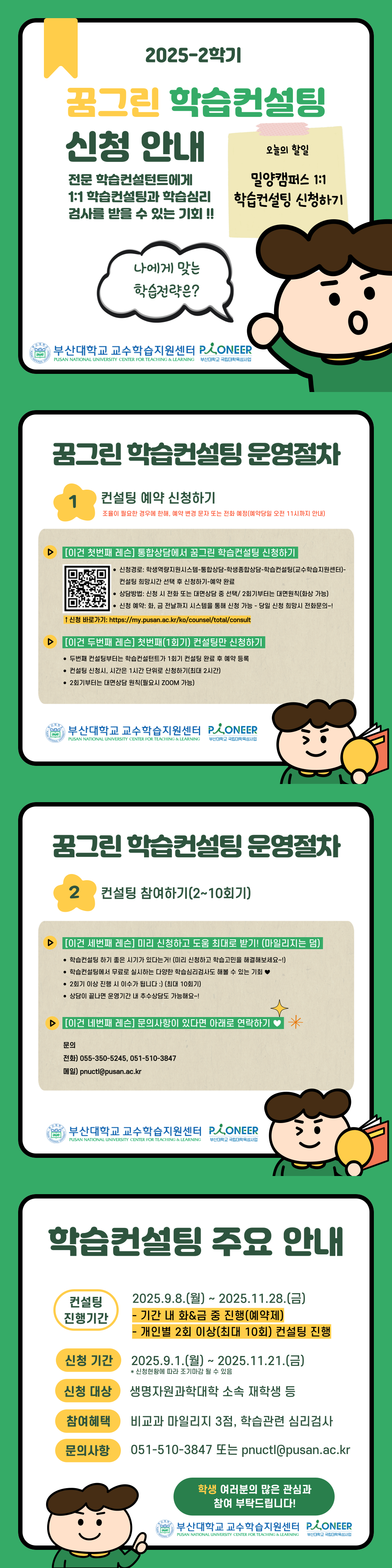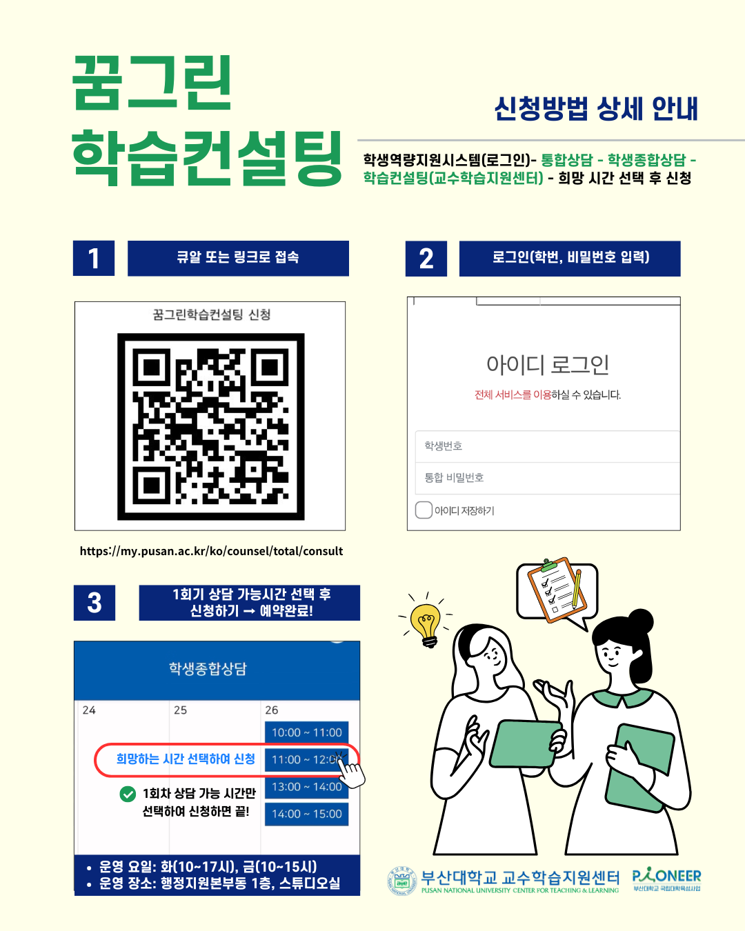 ○ 컨설팅신청 바로가기(로그인 후 이용): https://my.pusan.ac.kr/ko/counsel/total/consult