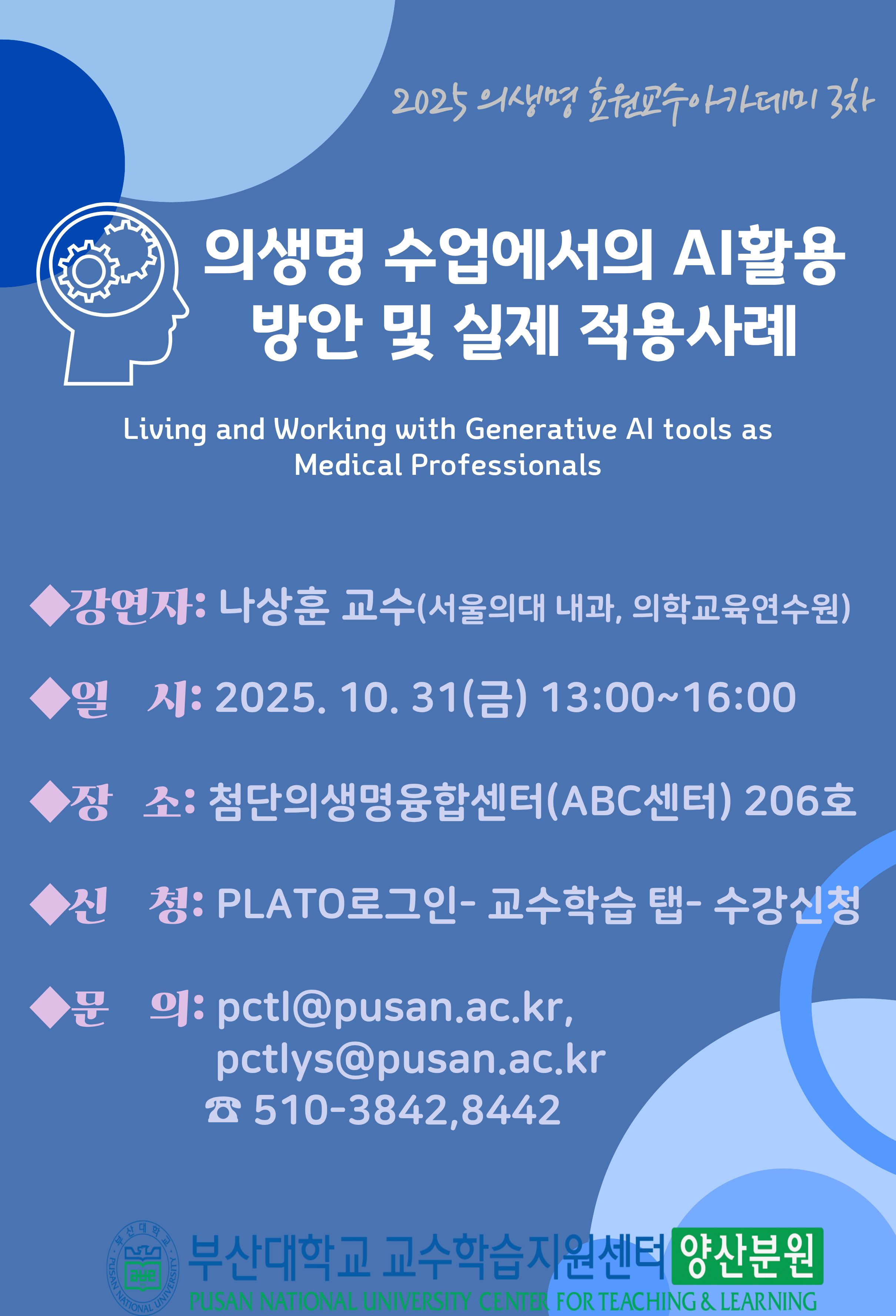 fnctId=bbs,fnctNo=9069 작성일 2025.10.21 수정일 2025.10.21 작성자 정희선 조회수 35 [의생명 효원교수아카데미 3차] 의생명 수업에서의 AI활용 방안 및 실제 적용 사례 ▶ 바로 가기 ◀ 첨부파일 첨부파일이(가) 없습니다.